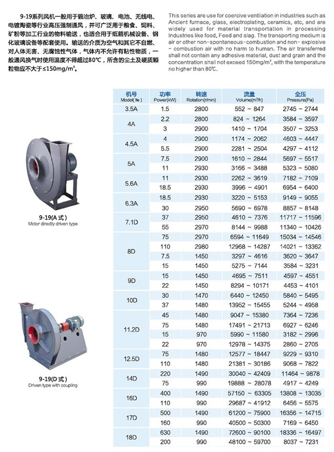 · 9-19系列高压离心风机的说明: