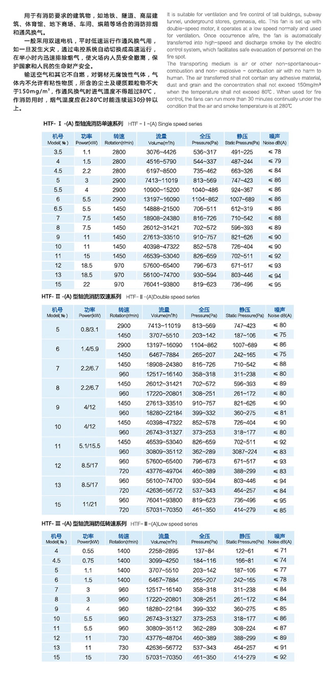 · HTF-A型轴流消防排烟风机的说明: